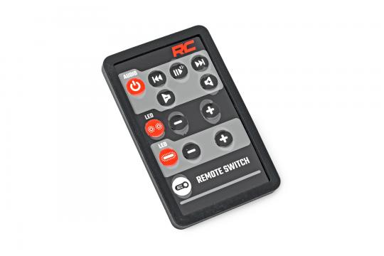 - Long-range RF remote control, controls lights and audio functions.